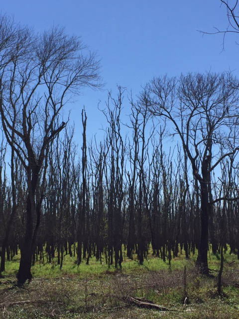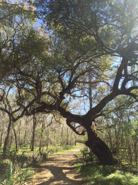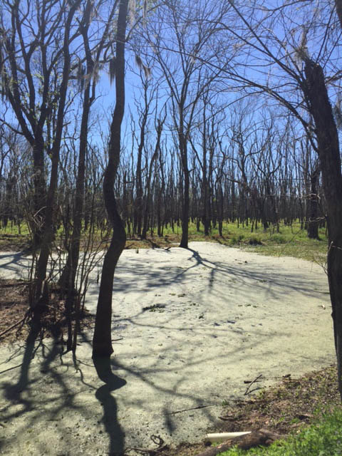 As for the park itself, it’s a series of beautiful, yet contrasting landscapes. For example, on one side of the 40 Acre Lake trail there is deep blue water with perfectly placed floating vegetation. On the other side is thick green swamp like pea soup with lifeless trees and overhanging Spanish moss. The only thing separating the two sides is the trail you’re walking on. The whole park is that way. Look one way and see one thing, look the other way and see the complete opposite.